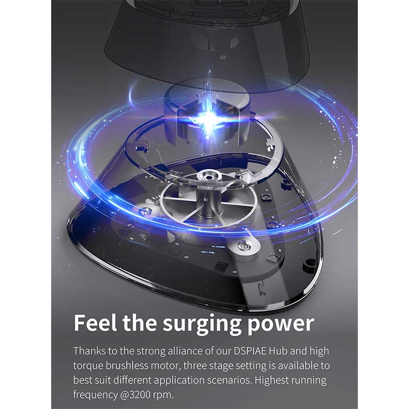 - High torque brushless motor with three speed settings