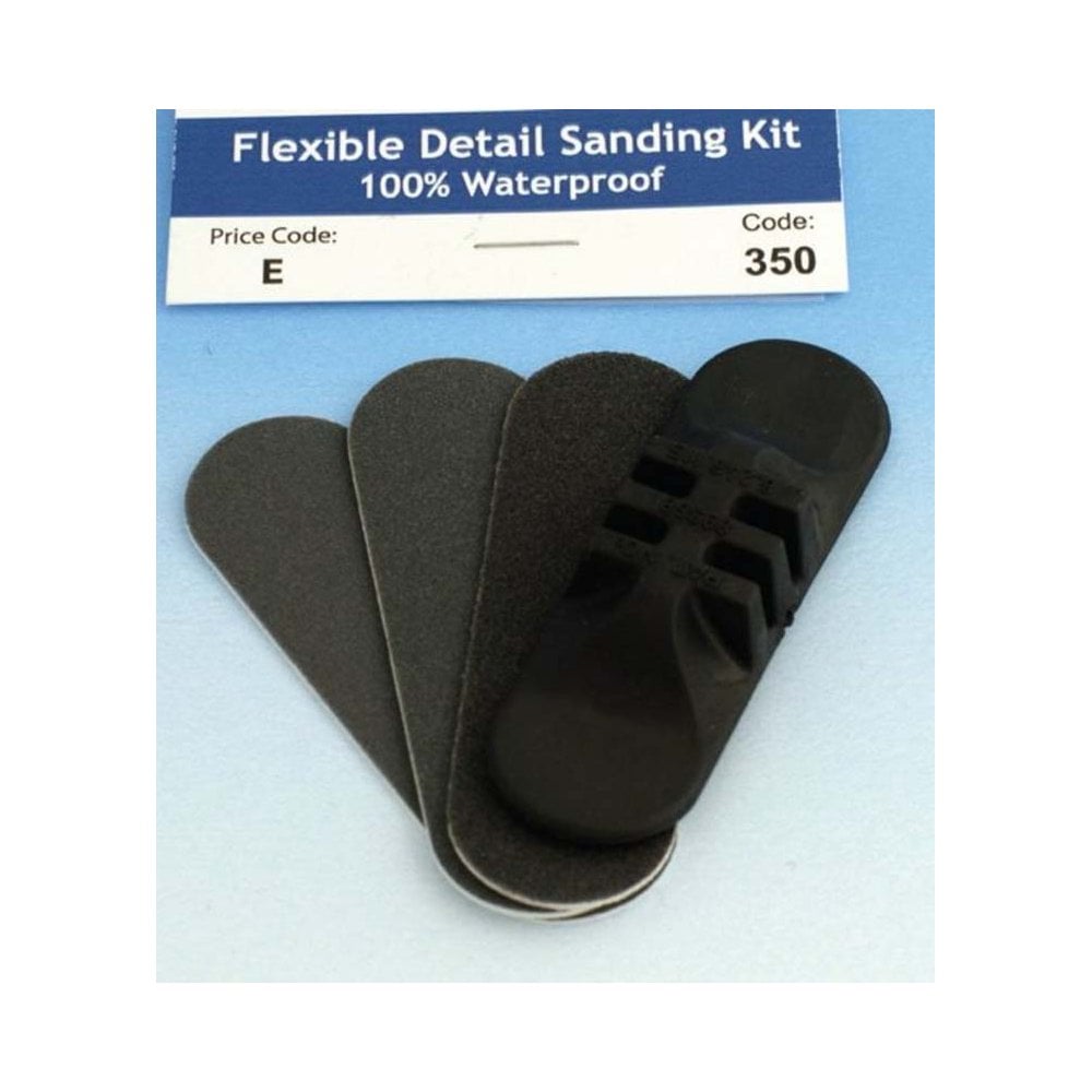 The Albion Alloys Flexible Detail Sanding Kit is a versatile set designed for precision sanding tasks in scale modelling and crafting. This kit includes three waterproof abrasive pads, each measuring 80mm x 25mm, mounted on cushioned foam for flexibility and control.