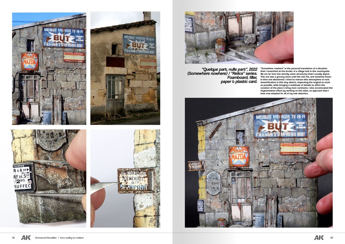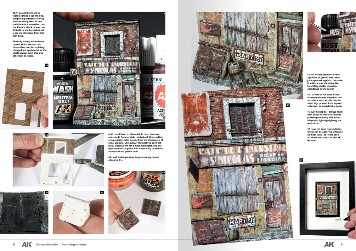 FROM REALITY TO REALISM STEP BY STEP GUIDE FOR SCALE MODELERSEMMANUEL NOUAILLIEREnglish. 112 pages. Hard cover.The French model maker specialized in facades and ultra-realistic constructions, Emmanuel Nouaillier immerses us in a journey through urban structures recreated to scale.It is a nostalgic and poetic work that invites the viewer to question the hobby with an artistic background, witnessing a vanishing urban landscape.After more than three decades of documentary photography dedicated to these timeless facades, the book shows how to transfer the photographed atmospheres into vignettes and volumes with detailed step-by-step processes.This book, bound in limited edition hardcover, is a very special work, halfway between modeling and art, which belongs to the most realistic current of our hobby