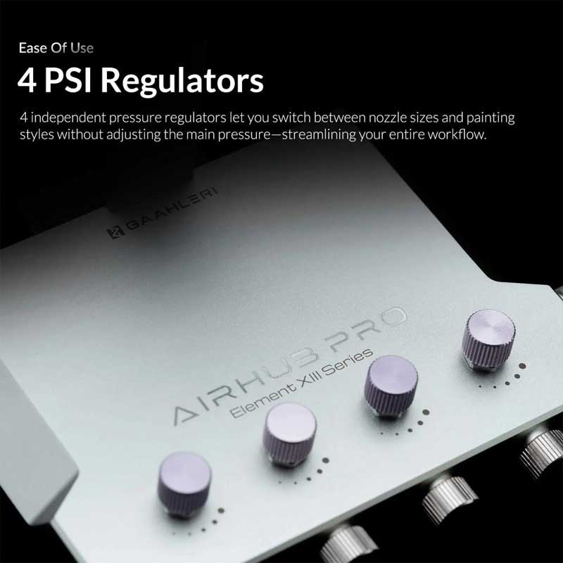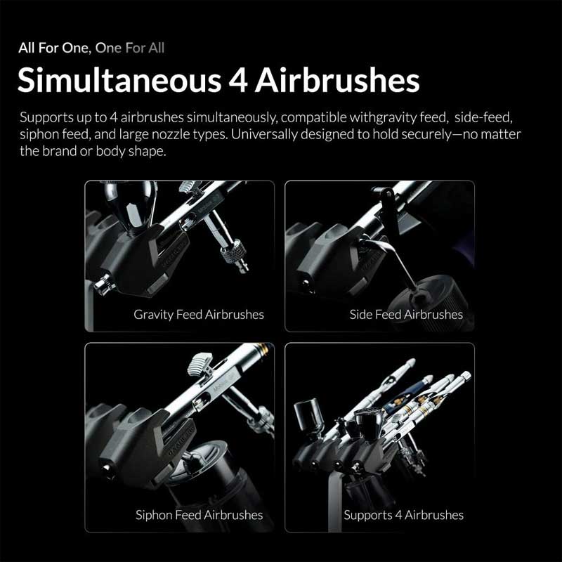 - Supports up to four airbrushes simultaneously