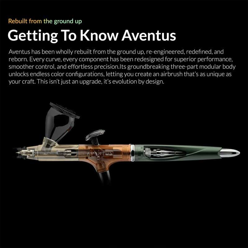With its dual nozzle configuration and advanced vortex airflow system, the Aventus offers consistent spray performance across a wide range of applications. The modular design, responsive trigger and quick-fit components allow for efficient setup and maintenance, giving modellers and artists a flexible and reliable airbrushing experience.