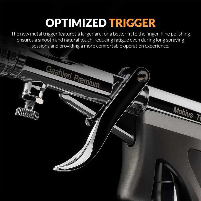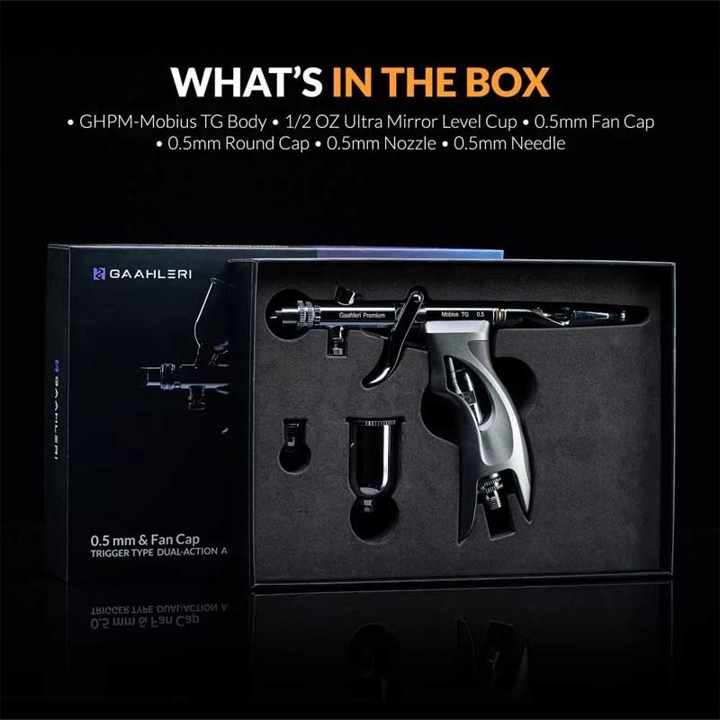 The Gaahleri Premium Series GHPM Mobius TG 0.5mm airbrush is built for both large surface coverage and controlled detail work. With its refined design and powerful airflow capabilities, it delivers efficient spraying while maintaining precision where needed.