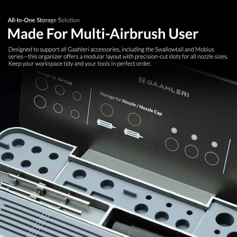 This all-in-one maintenance and storage solution from Gaahleri is designed to keep airbrush equipment organised, protected and ready for use. Built with a durable aluminium finish and precision-moulded construction, it offers a practical balance of durability and clean design for regular workshop use.