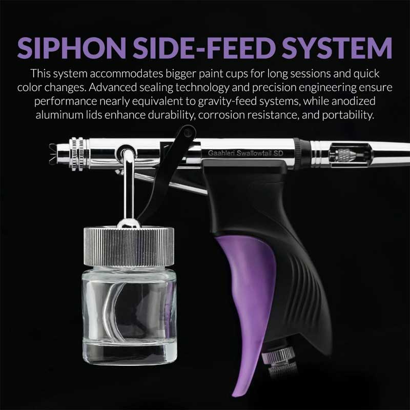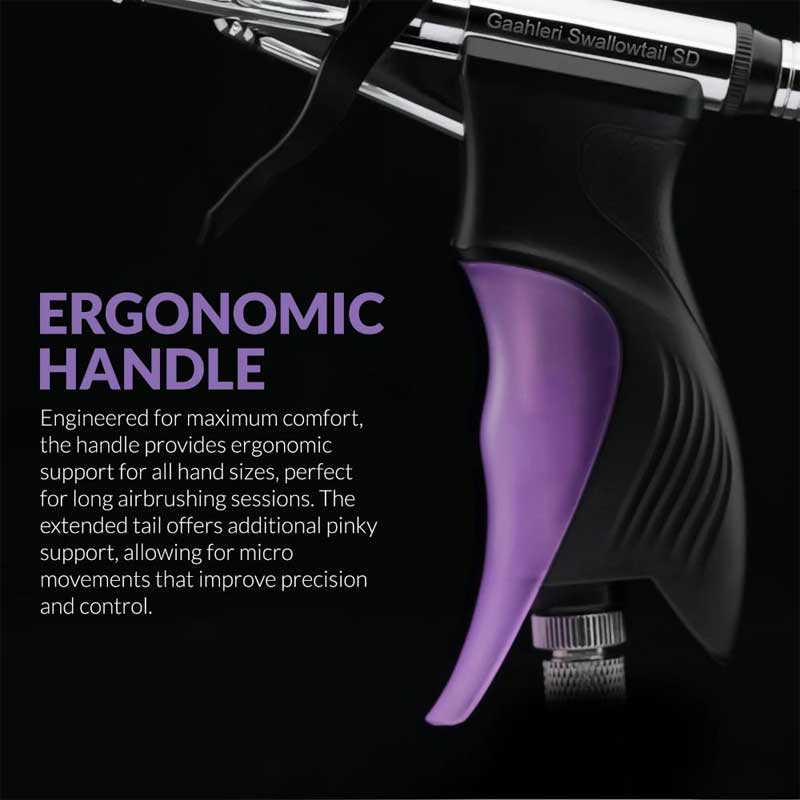 The Gaahleri Ace Series Swallowtail SD is a precision-engineered side-feed airbrush designed for both detailed work and broader applications. Its side-feed configuration allows for improved visibility and control, making it easier to spray at different angles and target specific areas with accuracy.