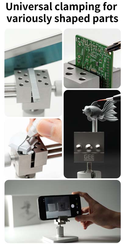 This compact hobby vise from GEEHOBBY is designed for precise clamping and handling of small model parts. Built with a high-density stainless steel core and reinforced outer construction, it offers a solid and stable platform for detailed work.