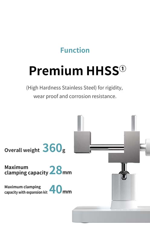 - Maximum clamping capacity 28mm, expandable to 40mm