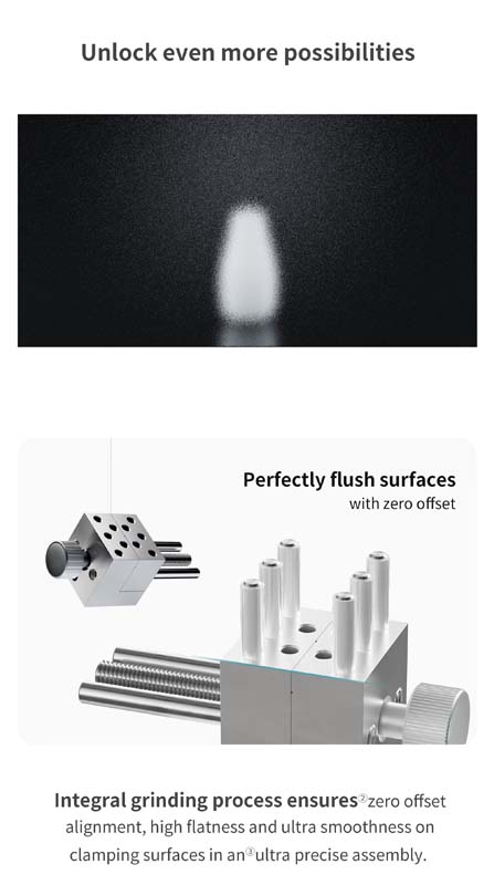Additional features such as the self-guiding locking system and zero-point positioning help improve accuracy and ease of use. The vise is also designed with smooth clamping surfaces to reduce the risk of damaging delicate parts.