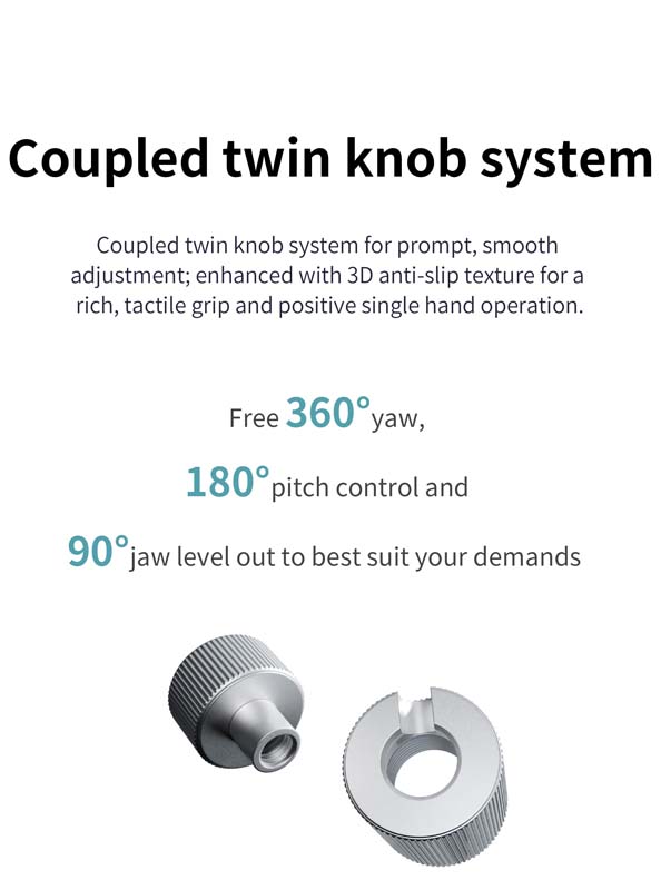 - 360° rotation, 180° pitch, 90° jaw adjustment