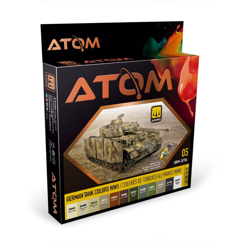 Set of 12 water-based, high-quality ATOM colours specially selected to represent the camouflage used by Panzer units throughout World War II. With these colours, you will be able to paint most of the vehicles that soldiered during the conflict, in both the European and the Eastern fronts. You can use these colours to paint German tanks and vehicles throughout the conflict, from 1939 to 1945. Using this set, you will be able to easily paint such iconic tanks as the Tiger I in all its variants, the Panther, or various light vehicles. This set provides you with all the correct colours saving a great deal of time. These colours are accurately matched and slightly lightened to compensate for the scale effect on any model.