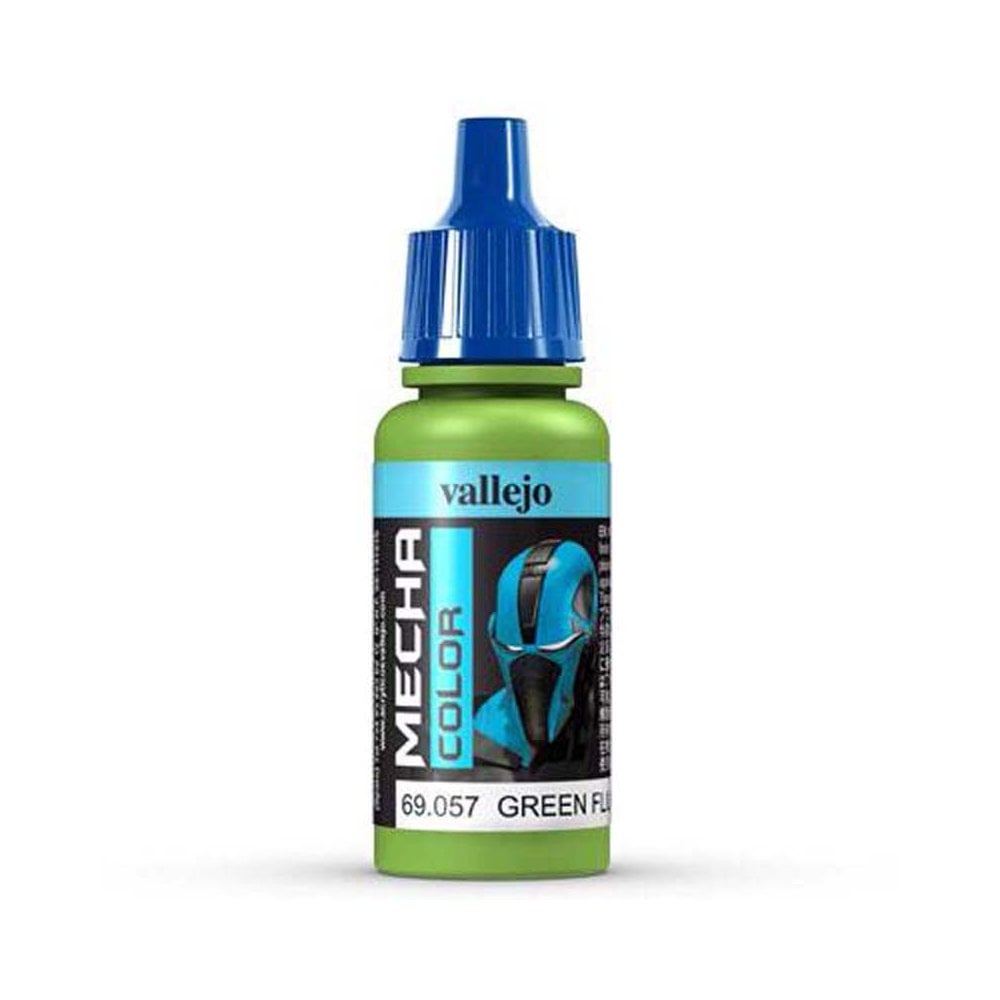Green Fluorescent 69.057 Vallejo Mecha Color New formula acrylic colors with a satin finish, extra resistant and impact proof especially designed for airbrushing surfaces exposed to aggressive manipulation. The advanced formulation contains a revolutionary component which guarantees exceptional adherence on even the most difficult surfaces, and offers great resistance to rough handling, impact, friction, scratches, etc. Once dry, the Mecha surface looks the same as the original plastic of the model, while yet the smallest details of the original remain clearly visible. The color range includes primers as well as special varnishes ‚¨ also with an exclusive formulation- and a series of colors for aging and weathering effects. It is recommended to apply the Mecha colors in several layers on the previously primed surface; a few hours after application the colors will have dried to form a homogenous coating of extraordinary strength and resistance. Mecha Color can be airbrushed directly or diluted with Vallejo Airbrush Thinner or Flow Improver, and the colors can also be applied by brush. The compressor adjustment recommended is 15 ‚¨ 20 PSI o 0.5 to 1 kg. For best airbrush maintenance we recommend using the Vallejo Airbrush Cleaner.Safety: Mecha Color is not flammable, and does not contain solvents. Please see also certified safety information of the product on the Safety page.Packaging: Mecha Color is available in 17 ml./0.57 fl.oz. bottles (with eyedropper). Mecha Primer and Mecha Varnish are also available in 60 ml./2.02 fl.oz. and 200 ml./6.76 fl.oz. bottles (with flip top and eyedropper).
