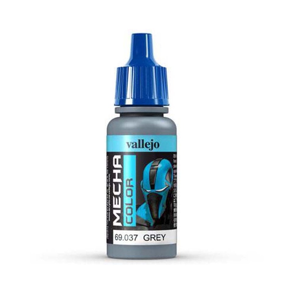 Grey 69.037 Vallejo Mecha Color New formula acrylic colors with a satin finish, extra resistant and impact proof especially designed for airbrushing surfaces exposed to aggressive manipulation. The advanced formulation contains a revolutionary component which guarantees exceptional adherence on even the most difficult surfaces, and offers great resistance to rough handling, impact, friction, scratches, etc. Once dry, the Mecha surface looks the same as the original plastic of the model, while yet the smallest details of the original remain clearly visible. The color range includes primers as well as special varnishes ‚¨ also with an exclusive formulation- and a series of colors for aging and weathering effects. It is recommended to apply the Mecha colors in several layers on the previously primed surface; a few hours after application the colors will have dried to form a homogenous coating of extraordinary strength and resistance. Mecha Color can be airbrushed directly or diluted with Vallejo Airbrush Thinner or Flow Improver, and the colors can also be applied by brush. The compressor adjustment recommended is 15 ‚¨ 20 PSI o 0.5 to 1 kg. For best airbrush maintenance we recommend using the Vallejo Airbrush Cleaner.Safety: Mecha Color is not flammable, and does not contain solvents. Please see also certified safety information of the product on the Safety page.Packaging: Mecha Color is available in 17 ml./0.57 fl.oz. bottles (with eyedropper). Mecha Primer and Mecha Varnish are also available in 60 ml./2.02 fl.oz. and 200 ml./6.76 fl.oz. bottles (with flip top and eyedropper).