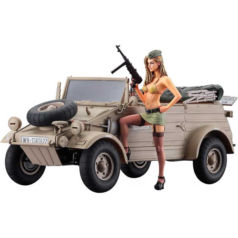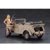 This limited edition kit also includes a resin female figure in 1/24 scale, allowing modellers to create a small display or diorama scene alongside the vehicle. The model features detailed mechanical components and accurate bodywork reflecting the design of the wartime vehicle.