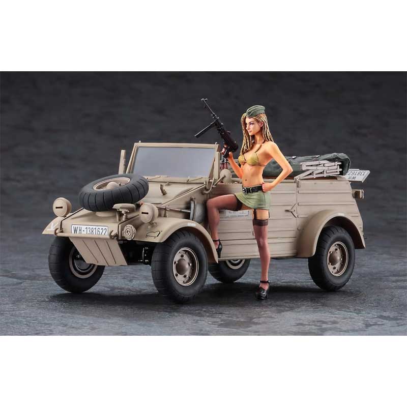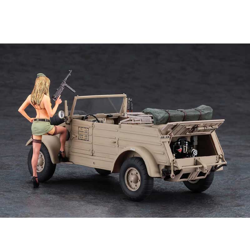This 1/24 scale Kubelwagen Type 82 from Hasegawa represents the lightweight German military vehicle widely used by the Wehrmacht during the Second World War. Based on the Volkswagen design, the Kubelwagen became a reliable and versatile transport vehicle used for reconnaissance, liaison and personnel movement.