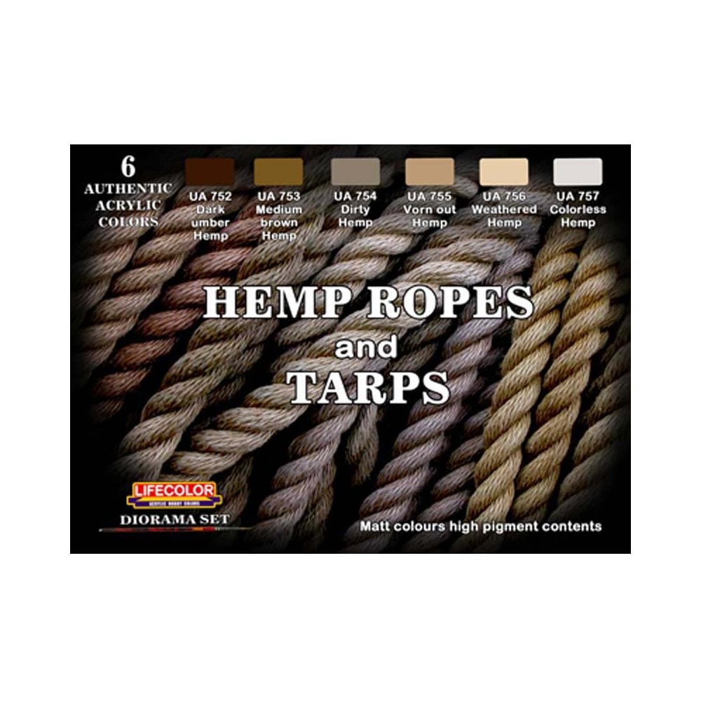 The LifeColor Hemp Ropes and Tarps Set CS-28 is designed for painting weathered ropes, canvas, tarpaulins, tents, and other fabric-based equipment often seen on vehicles, ships, and dioramas. These six earthy, subdued tones offer realistic variation and flexibility when working with fabric textures or nautical detailing.