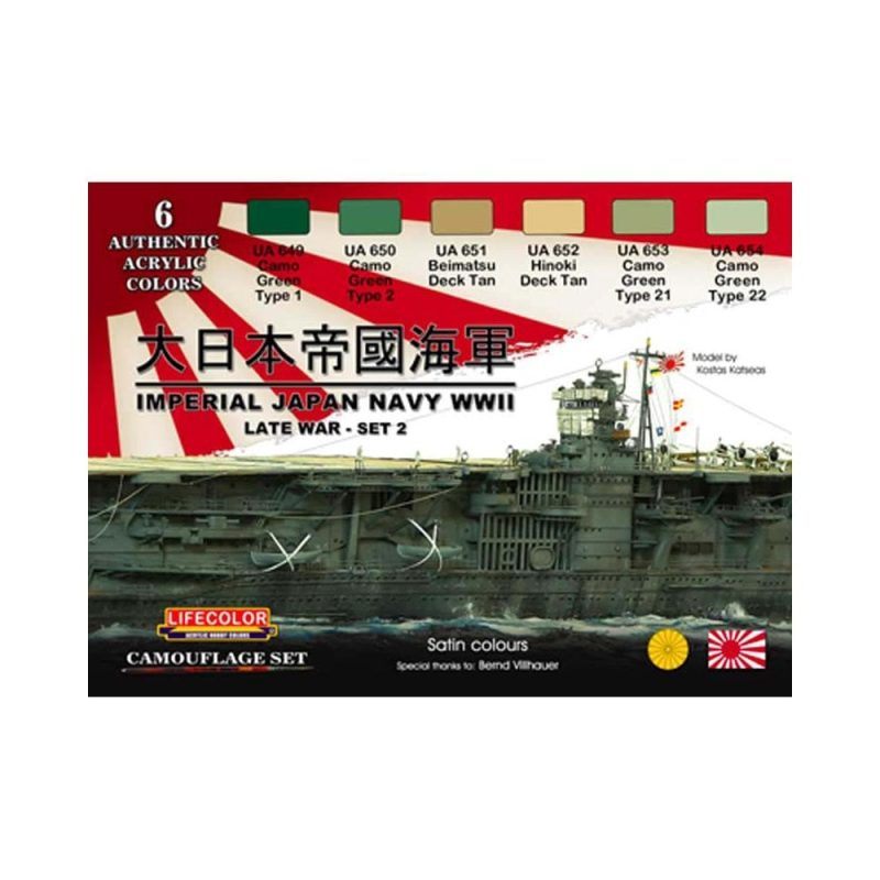LifeColor’s CS-37 Imperial Japan Navy WWII Late War Set 2 complements naval modelling with six historically accurate satin-finish tones developed for late-war camouflage and deck surfaces of IJN ships. These paints offer excellent coverage and are suitable for both airbrush and brush techniques.