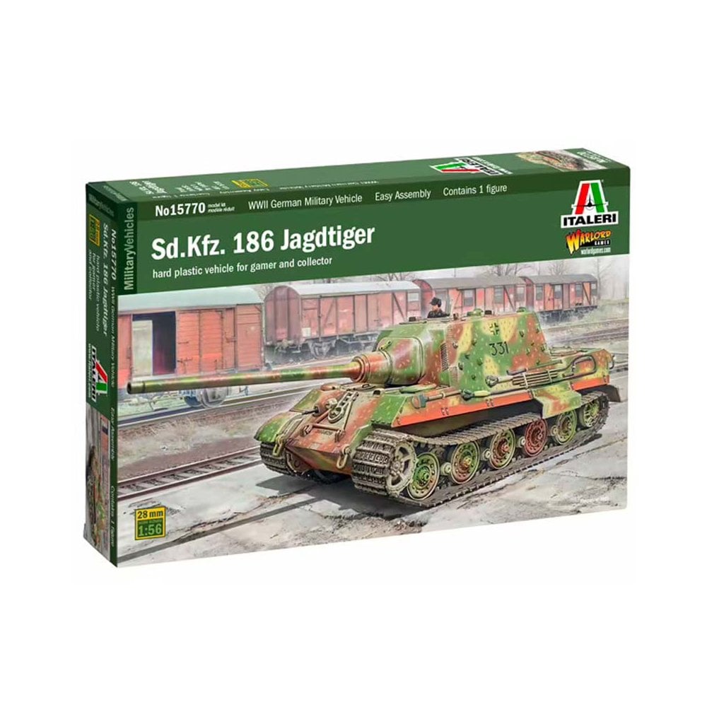 100% NEW MOULD – TANKER INCLUDEDWWll GERMAN MILITARY VEHICLE -(28 mm.) EASY TO ASSEMBLY FOR GAMERS AND COLLECTORSThe powerful Sd.Kfz. 186 Jagdtiger was built onto the elongated hull of the Tiger II heavy tank in the latter stages of the Second World War. Inside its mighty casemate was the 128 mm PaK 44 cannon, armed with shells that could pierce the armour of all opposing enemy tanks. This self-propelled tank buster was deployed effectively and lethally against even the most recently introduced Soviet heavy tanks such as the IS-2. The Jagdtiger had a huge weight of almost 76 tons. The large cannon and heavy armour whilst effective, could not outweigh the poor manoeuvrability and low speeds of the vehicle in battle. The significant weight affected its reliability, and production volumes were also limited. However, the Jagdtiger for its offensive capacity alone, ranks as the high point of German production of self-propelled tank destroyers during World War 2.