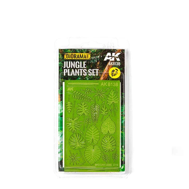 Jungle Plants Set AK Interactive AK8138The new items in the tufts range include grass mats with fallen leaves and different types of foliage. These miniature vegetation products are perfect to complement your scenes, figure bases and any type of diorama in which you need an extra touch of realism. Choose the type of grass you need, and create your scene quickly and easily, using the AK-Interactive Diorama Series product range.