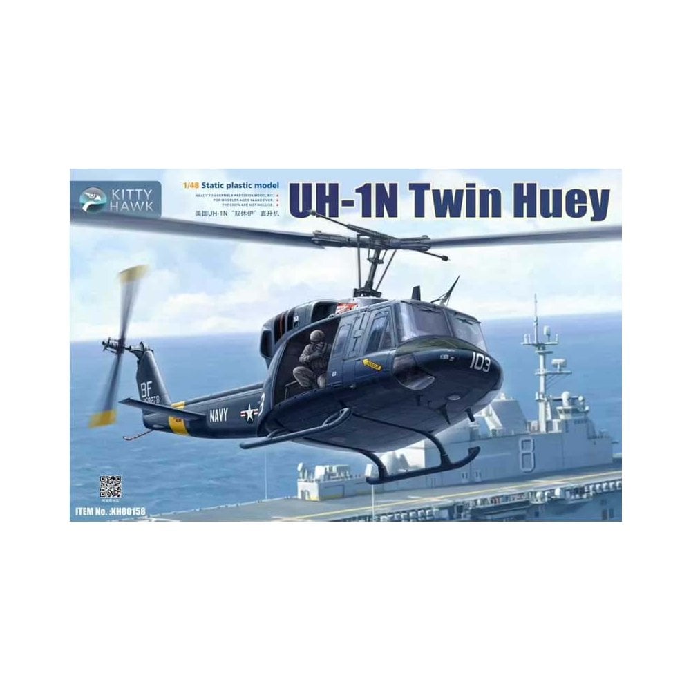 This 1/48 scale UH-1N Twin Huey kit from Kitty Hawk Models offers a detailed and accurate representation of the iconic utility helicopter used by U.S. and allied forces. Developed as a twin-engine evolution of the legendary UH-1 Iroquois, the UH-1N became a vital asset for troop transport, medevac, and special operations roles throughout the Cold War and beyond. This plastic model includes a full cabin interior, detailed rotor assembly, and optional weapons systems, making it ideal for a variety of diorama or display settings.