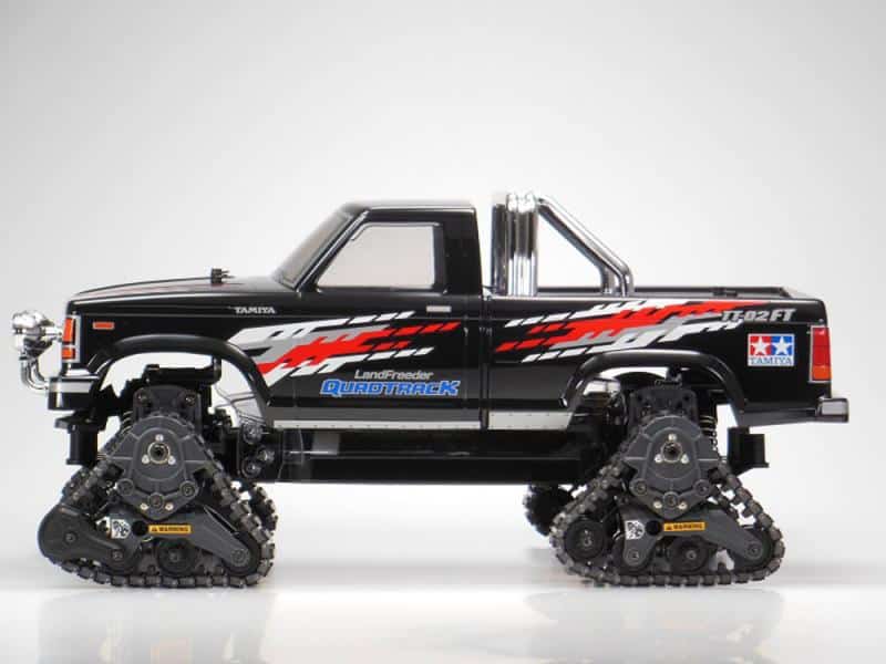 Tamiya is delighted to welcome the Landfreeder Quadtrack to the world of R/C. This model uses a new variant of the TT-02 chassis with three-sided track units instead of the wheels: the result is awesome traction, even on rough terrain. CR-Tuned motor is included as the kit-standard motor.