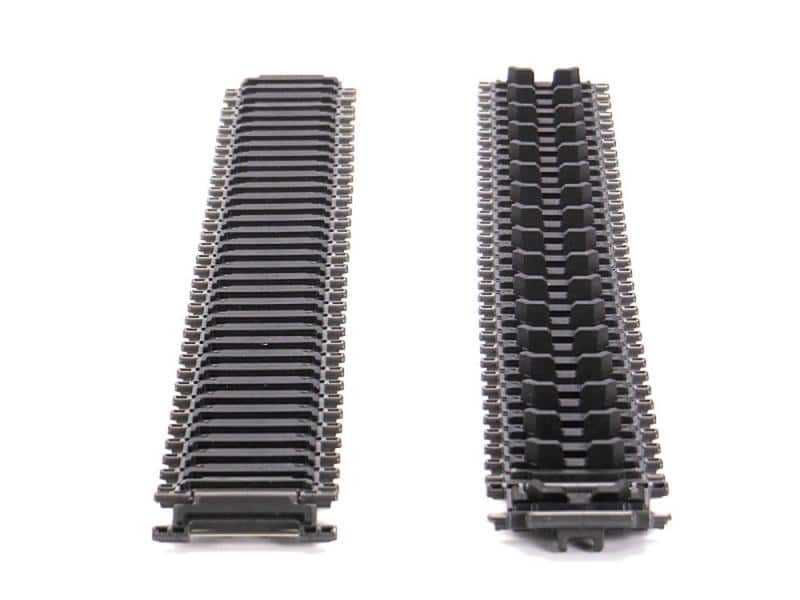 Tracks require assembly from links, and offer efficient traction. Two types of link (standard and grouser) are included.