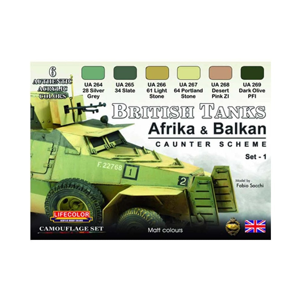 The LifeColor British Tanks Set 1 Africa & Balkan CS-43 offers a historically accurate palette for recreating British military vehicles used during World War II campaigns in North Africa and the Balkans. This selection includes authentic matt shades to replicate sun-bleached and dusty tank finishes from these harsh operational environments.