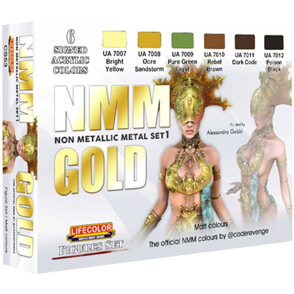 This LifeColor set is specially designed for reproducing Non Metallic Metal (NMM) effects using traditional acrylic paints. The technique simulates the appearance of metal surfaces without using metallic pigments, allowing for dramatic lighting, stylised reflections, and more control over contrast—particularly useful in figure painting and fantasy subjects.