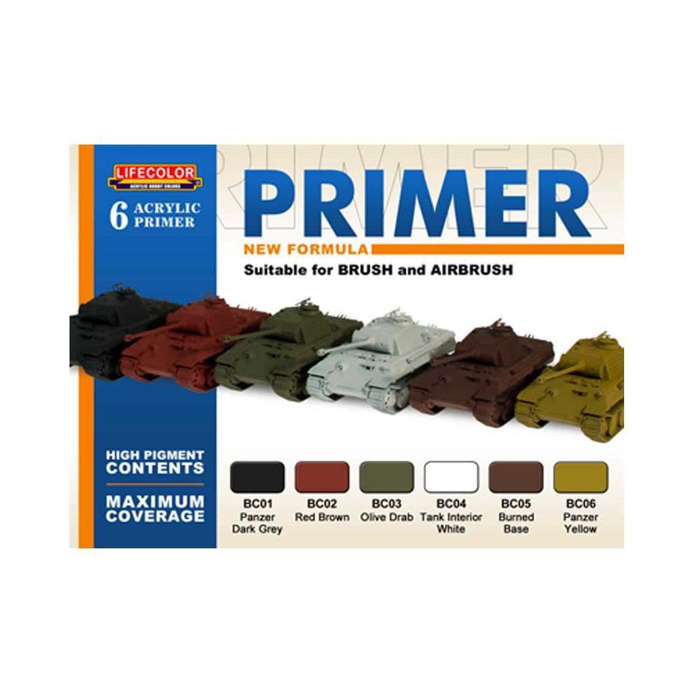The LifeColor Primer Set PS01 features a new high-coverage formula, designed for use with both brush and airbrush applications. These water-based acrylic primers offer exceptional surface adhesion and act as the perfect foundation for subsequent layers of LifeColor acrylic paint.