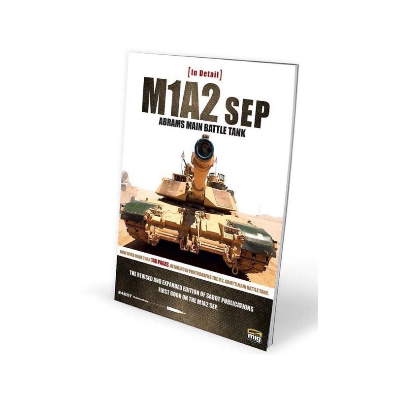 M1A2 Sep Abrams Main Battle Tank In Detail Book A.MIG-5950 Ammo MigThe M1A2 SEP is a new joint AMMO and SABOT Publications book in which you will find over 130 pages of large and bright color photos of the U.S. Army’s M1A2 SEP Abrams main battle tank in Europe and the Middle East. Within this excellent reference book, you will find a wide range of unique information, essential to detail, paint, and weather any of the superb M1A2 Abrams model kits on the market.There are large color photos of vehicles in all types of environments, color plates to highlight tan paint schemes and markings, and plenty of examples of light to heavy weathering. There is also an extensive walkaround section showing the details of the turret, upper and lower hull, roadwheels and suspension, and even the interior!If you are an M1A2 Abrams fan, or simply interested in modern armor, you should definitely have this outstanding reference in your library