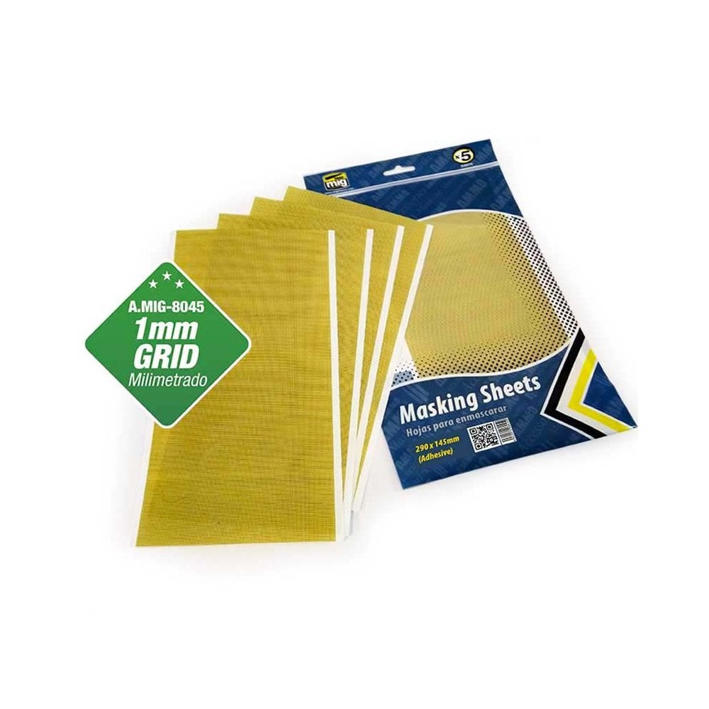 Masking Sheets 1mm Grid. x5 Sheets. 290x145mm (Adhesive) Ammo AMIG8045