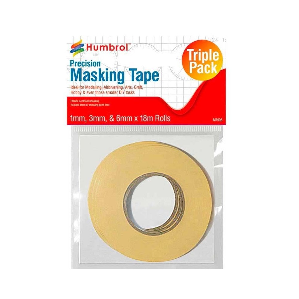 The Humbrol Masking Tape Set (AG5110) offers a versatile selection of precision tapes designed to meet the diverse needs of modelers and hobbyists. This set includes three rolls of masking tape in varying widths, allowing for accurate and clean paint lines on your projects.