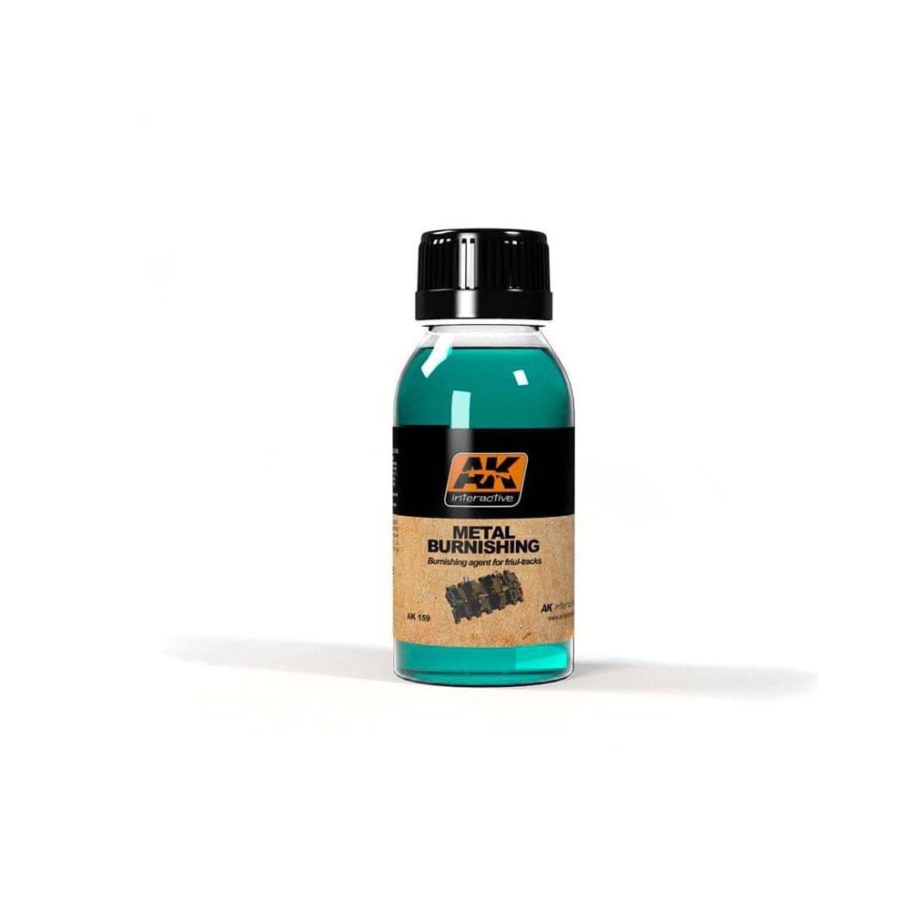 An essential product, to rust in a natural way, tracks made out of white metal. You just need to submerge the tracks in the liquid for a few minutes and the metal takes on a realistic dark and oxidized aspect, easily and effortlessly. Tips and hints regarding the burnishing agentClean before immersionwhy:Avoid uncovered spots causing irregular colouring Use a plastic traywhy:Avoid unintended reactions with other tray materials thin 1:1 with waterwhy:Better control if you aim for natural results.More time to eleminate bubbles (irregular colouring)Better coverage when immersed completely ((irregular colouring)) Separate the emerging sediment before store for re-usewhy:Avoid prolonged and unintended chemical reactions causing the”exhausting” of the product over the time once stored.