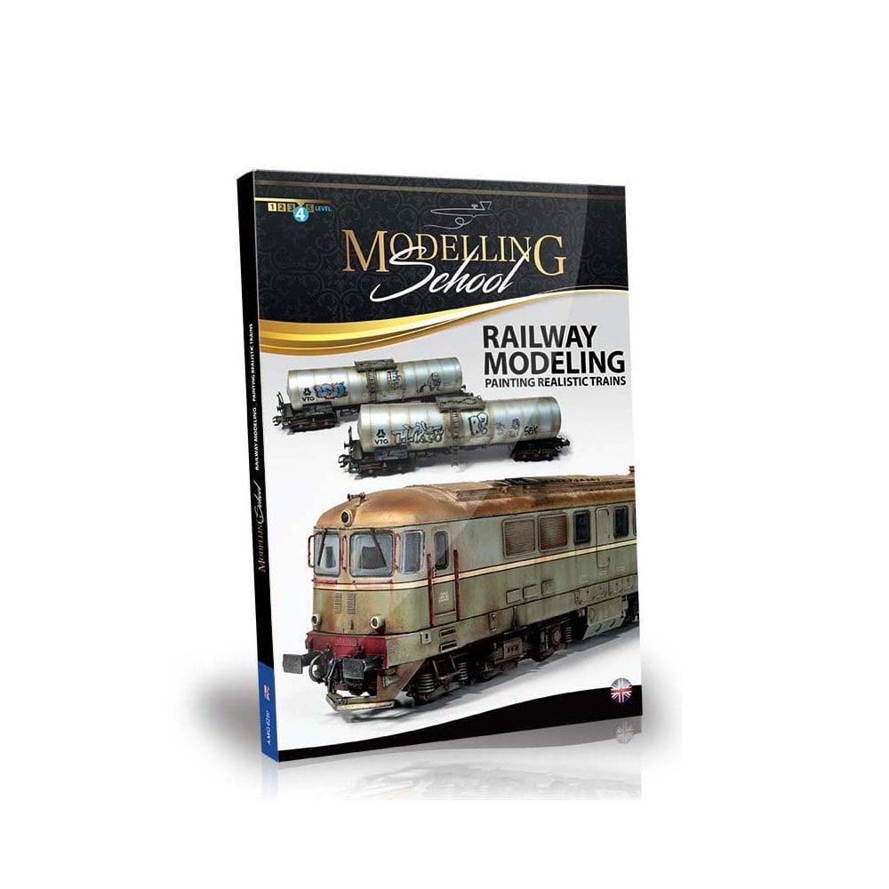 Modelling School – Railway Modeling: Painting Realistic Trains Ammo Mig Jimenez A.MIG-6250The growing desire of railway modelers to transform their electric railway models into super realistic vehicles in scale has finally found the perfect complimentary guide. This book is designed so that you can learn how to transform the clean toy-like appearance of pre-painted commercial railway models into realistic vehicles featuring the appropriate effects of wear and tear typical of these machines as seen throughout their operational life.We will show you how to create all the possible effects that appear on both locomotives and the many different types of railway stock of all eras. You will also learn how to improve your scenery and setting with simple and effective techniques that provide a more realistic appearance.Some of the best railway modelers in the world will show you how to apply the right products and techniques step by step, in order to achieve each effect in a fun and simple way. No matter if you are looking to transform your entire layout into completely realistic scenes or if you only want to create a small static diorama with a train model, this is the book for you.
