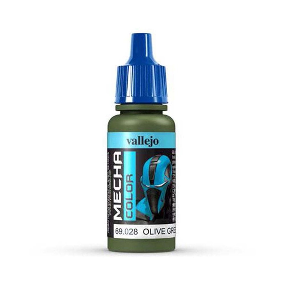 Olive Green 69.028 Vallejo Mecha Color New formula acrylic colors with a satin finish, extra resistant and impact proof especially designed for airbrushing surfaces exposed to aggressive manipulation. The advanced formulation contains a revolutionary component which guarantees exceptional adherence on even the most difficult surfaces, and offers great resistance to rough handling, impact, friction, scratches, etc. Once dry, the Mecha surface looks the same as the original plastic of the model, while yet the smallest details of the original remain clearly visible. The color range includes primers as well as special varnishes ‚¨ also with an exclusive formulation- and a series of colors for aging and weathering effects. It is recommended to apply the Mecha colors in several layers on the previously primed surface; a few hours after application the colors will have dried to form a homogenous coating of extraordinary strength and resistance. Mecha Color can be airbrushed directly or diluted with Vallejo Airbrush Thinner or Flow Improver, and the colors can also be applied by brush. The compressor adjustment recommended is 15 ‚¨ 20 PSI o 0.5 to 1 kg. For best airbrush maintenance we recommend using the Vallejo Airbrush Cleaner.Safety: Mecha Color is not flammable, and does not contain solvents. Please see also certified safety information of the product on the Safety page.Packaging: Mecha Color is available in 17 ml./0.57 fl.oz. bottles (with eyedropper). Mecha Primer and Mecha Varnish are also available in 60 ml./2.02 fl.oz. and 200 ml./6.76 fl.oz. bottles (with flip top and eyedropper).