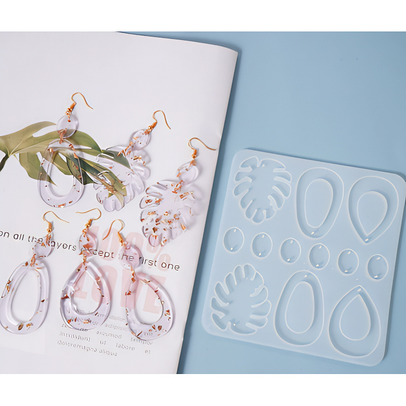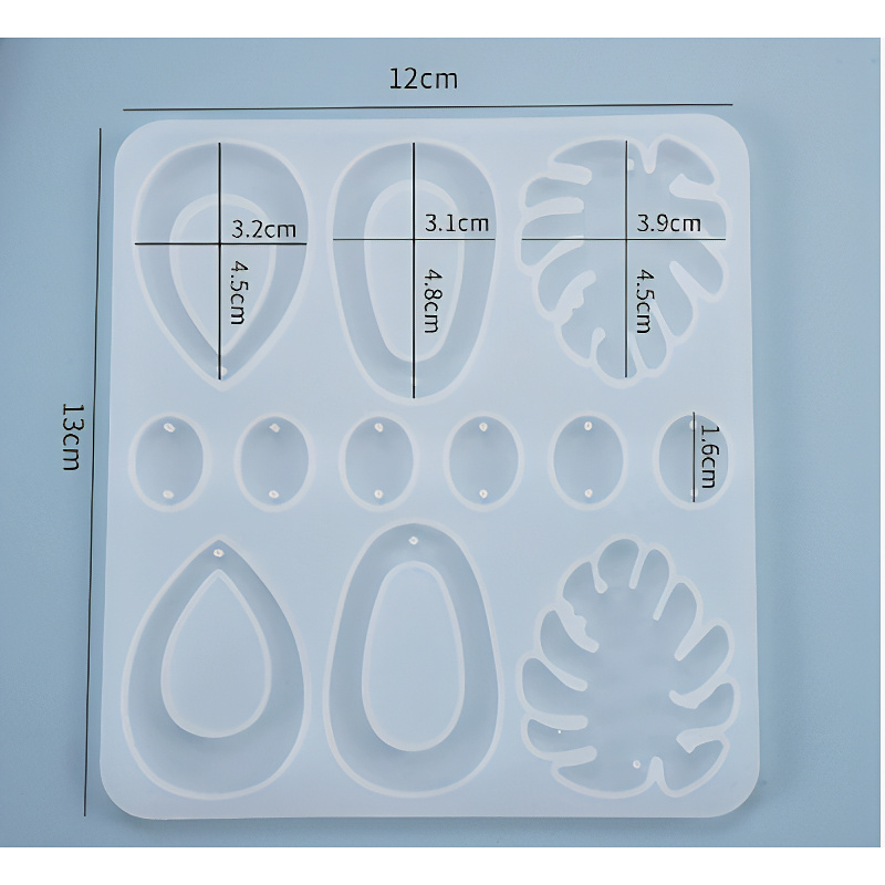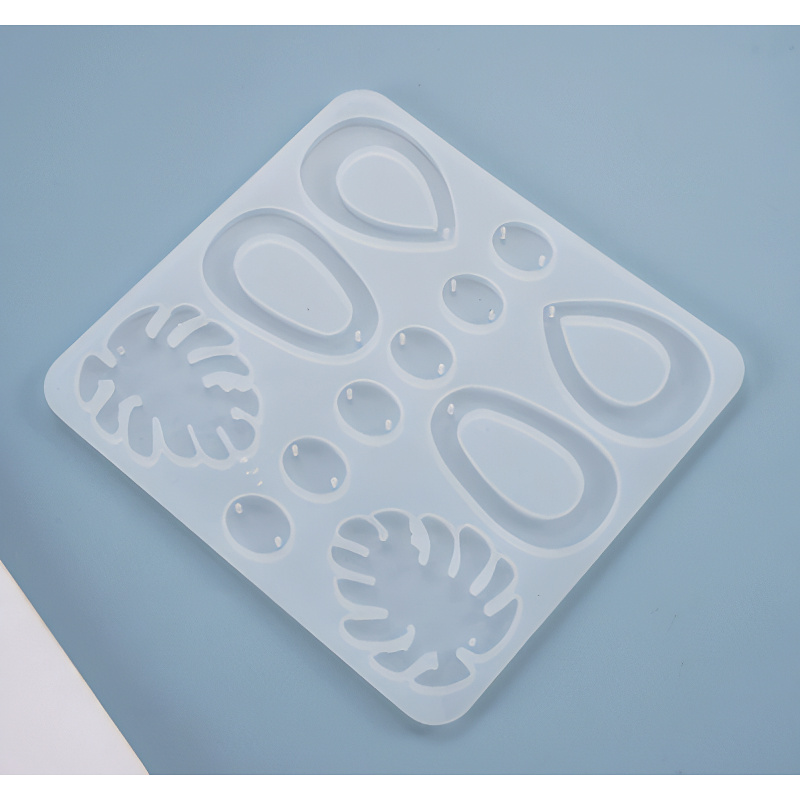 This silicone mould features a collection of organic and flowing shape cavities arranged within a single casting tray. The mix of teardrop forms and leaf-inspired shapes makes it suitable for creating decorative elements, charms, craft components or test pieces depending on the material used.