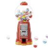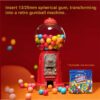 Constructed from 936 pieces, the model captures the distinctive shape of a gumball dispenser, including the clear globe section and base unit. The design incorporates a working mechanism where a coin can be inserted and the knob turned to release a capsule from the machine. This adds an engaging feature that goes beyond static display, making the model both decorative and interactive.