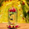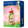 Constructed from 234 pieces, the model features the Little Prince seated on a floral swing positioned above a small landscape with grass and a fox. The arrangement creates a layered scene, combining character, environment, and decorative elements into a cohesive display. The entire setting is enclosed within a dome, which can be lifted away to access the interior for viewing or adjustment.