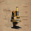 Constructed from 1,107 pieces, the model features a carefully designed structure that reflects the proportions and mechanical layout of historical microscopes. The arm can be tilted to adjust the viewing angle, adding a functional element to the design. Additional mechanical features are incorporated throughout the build, providing movement and interaction beyond a static display.