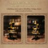 The set also includes a miniature workbench with test tubes stored inside a unit with an opening drawer, as well as a specimen jar fitted with a removable pipette lid. These accessories help create a complete laboratory scene, adding context and visual interest. The combination of the main microscope and supporting elements results in a cohesive display piece that reflects the look of early scientific environments.
