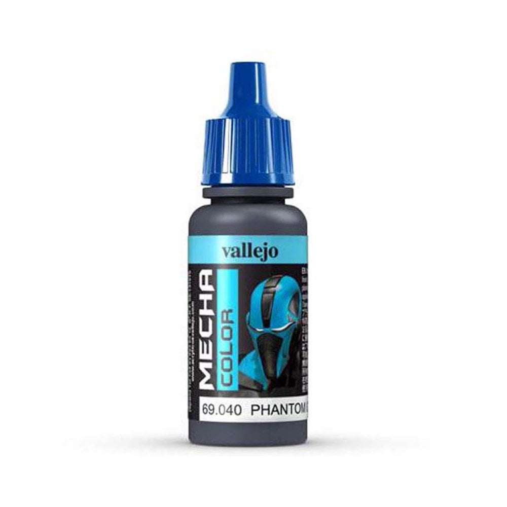 Phantom Grey 69.040 Vallejo Mecha Color New formula acrylic colors with a satin finish, extra resistant and impact proof especially designed for airbrushing surfaces exposed to aggressive manipulation. The advanced formulation contains a revolutionary component which guarantees exceptional adherence on even the most difficult surfaces, and offers great resistance to rough handling, impact, friction, scratches, etc. Once dry, the Mecha surface looks the same as the original plastic of the model, while yet the smallest details of the original remain clearly visible. The color range includes primers as well as special varnishes ‚¨ also with an exclusive formulation- and a series of colors for aging and weathering effects. It is recommended to apply the Mecha colors in several layers on the previously primed surface; a few hours after application the colors will have dried to form a homogenous coating of extraordinary strength and resistance. Mecha Color can be airbrushed directly or diluted with Vallejo Airbrush Thinner or Flow Improver, and the colors can also be applied by brush. The compressor adjustment recommended is 15 ‚¨ 20 PSI o 0.5 to 1 kg. For best airbrush maintenance we recommend using the Vallejo Airbrush Cleaner.Safety: Mecha Color is not flammable, and does not contain solvents. Please see also certified safety information of the product on the Safety page.Packaging: Mecha Color is available in 17 ml./0.57 fl.oz. bottles (with eyedropper). Mecha Primer and Mecha Varnish are also available in 60 ml./2.02 fl.oz. and 200 ml./6.76 fl.oz. bottles (with flip top and eyedropper).