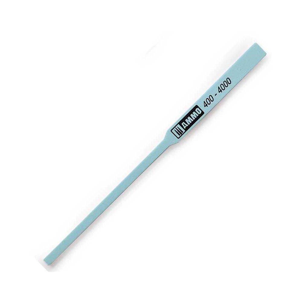 This sanding stick provides 2 different grits: 400/4000, ideal for eliminating defects and also for creating a very smooth finish. The 400 grit can be used to remove mould seams, scratches, traces of glue, putty, and other defects. With the 4000, you will be able to polish the surface. This side is especially useful for polishing clear plastic parts, removing the glossy finish from decals, or polishing previously painted surfaces. The flexibility of the material easily conforms to any shape including rounded surfaces. Can be used on a full range of materials including resin, metal, wood and, of course plastic. It can be used both dry and moistened with water.