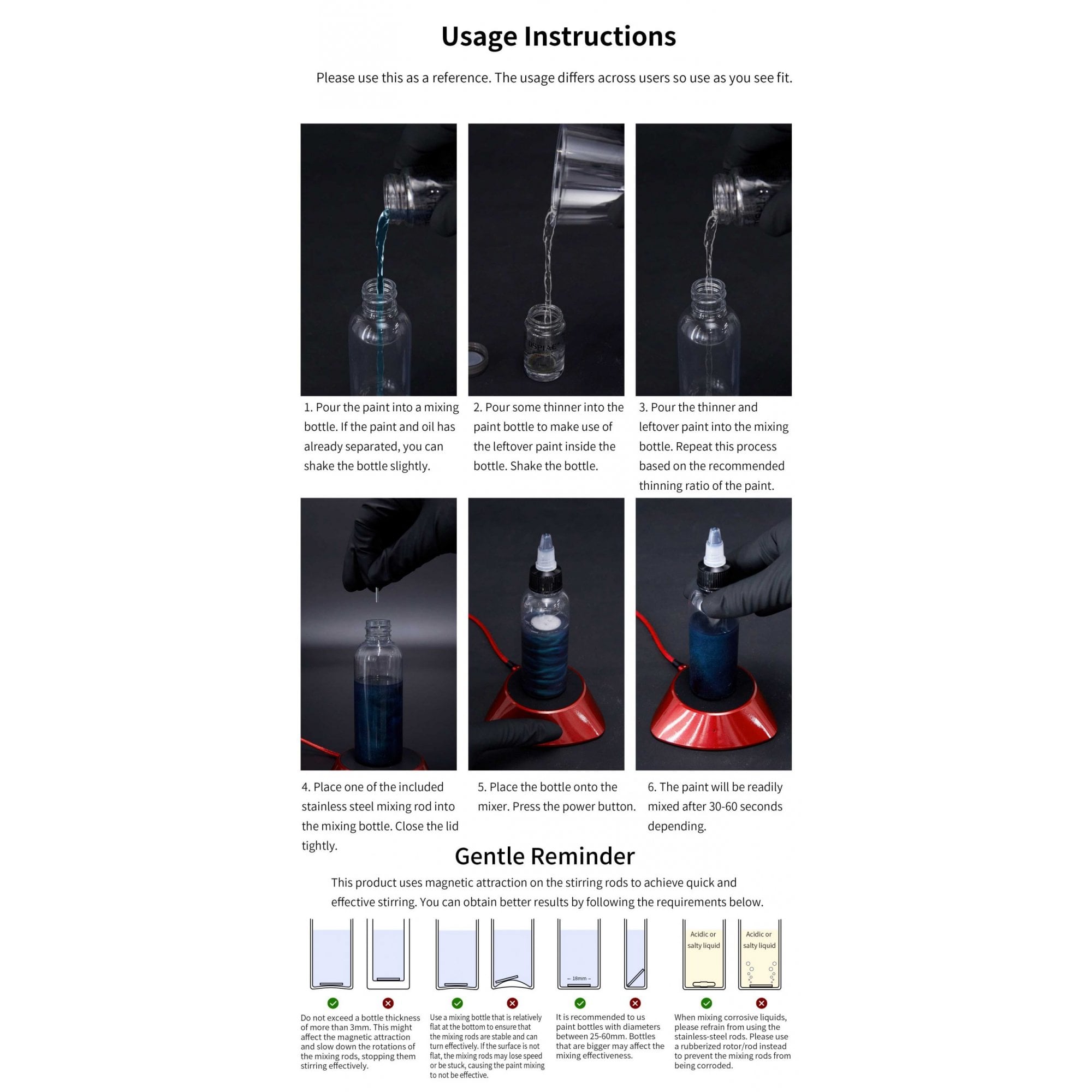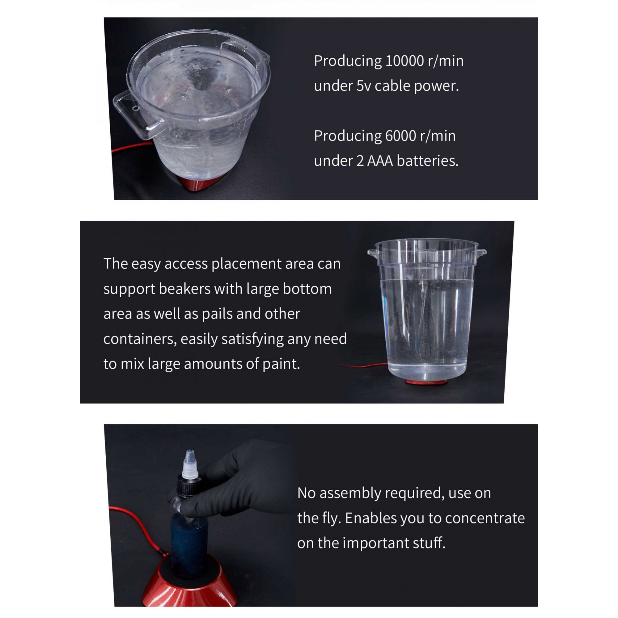 Tip: Add a small magnetic stir bar to your paint pot, place it on the mixer, and run for 30–60 seconds before use. Avoid overheating by limiting mixing cycles to 2–3 minutes each.