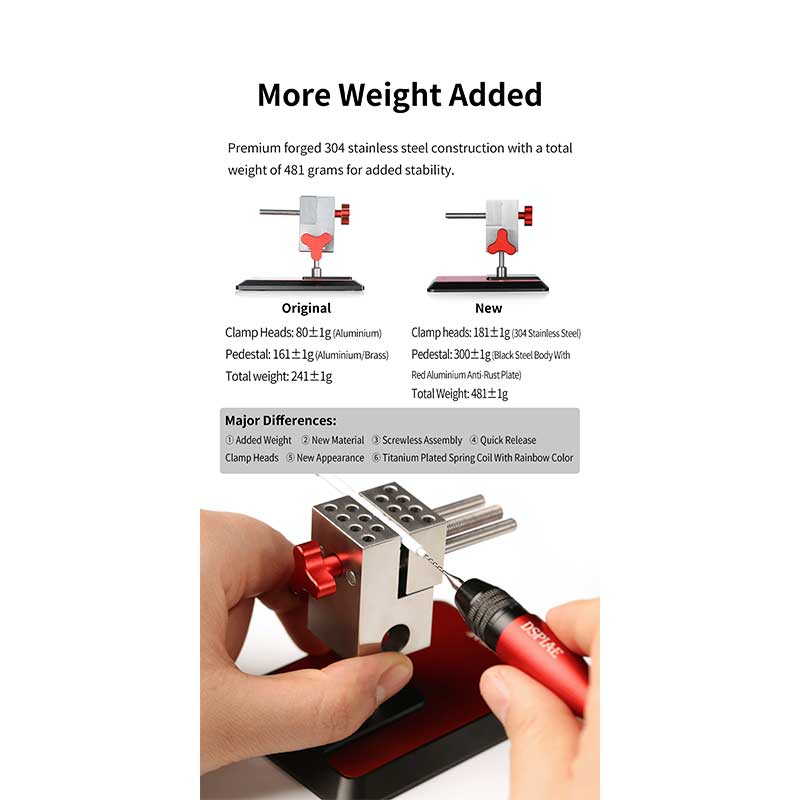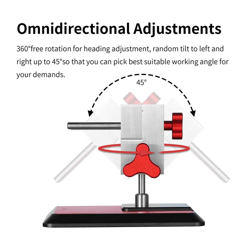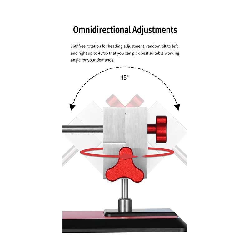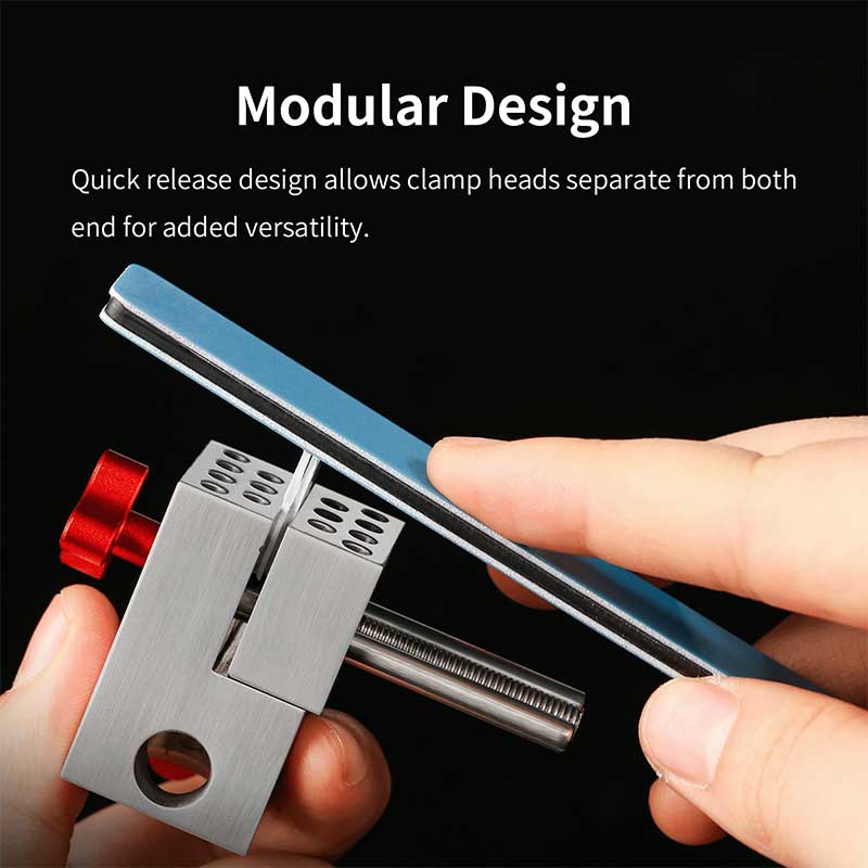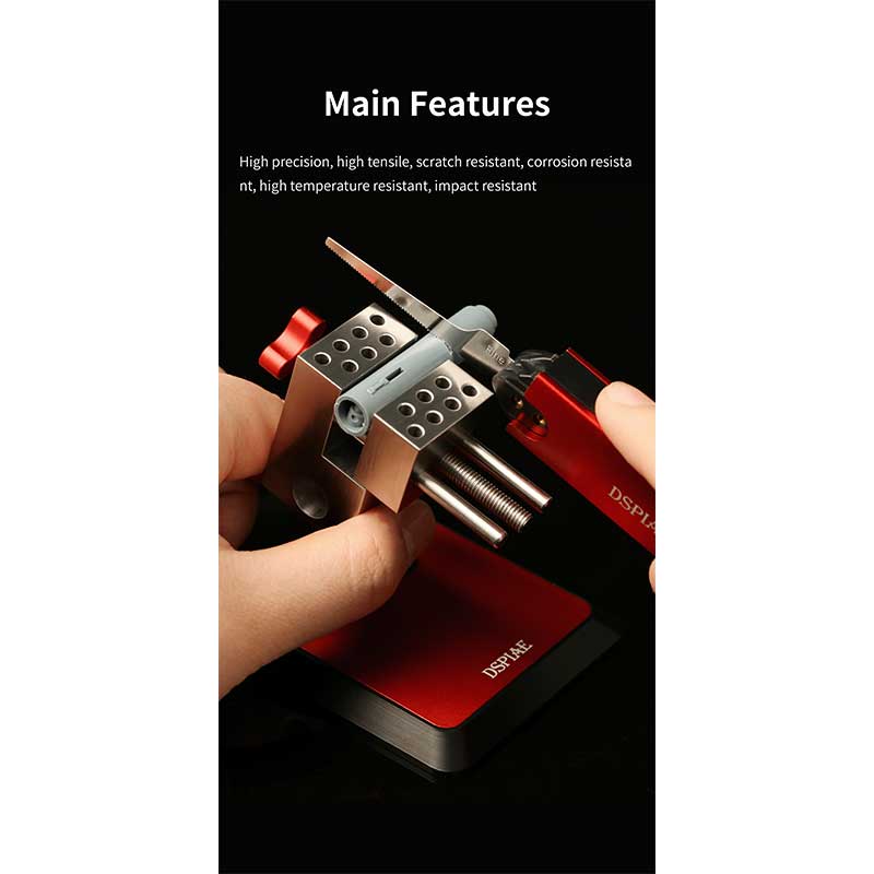 - Adjustable clamp mechanism firmly holds small components without crushing