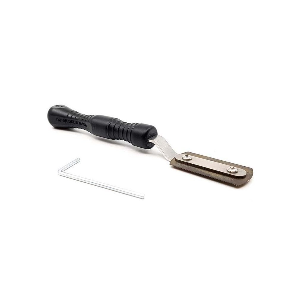 ASK Handle – Asymetrical. For use with our unique ASK Micro Saw. This ergonomically designed tool, made in the Czech Republic from high-Quality materials is perfect for very fine work and featuresa textured handle for better grip and a high-strength stainless steel saw-holder, the design of which allows the blade to be adjusted to cut to a specific depth. The offset saw holder allows the blade to be employed in areas where a straight handle might cause an obstruction. The set includes the handle with the asymetrical saw holder, one fine razor saw blade with two different grades of cutting edge, and an Allen key.An excellent tool for very precise modelling work. Our handle is universal and can be used with other manufacturers blades if desired.