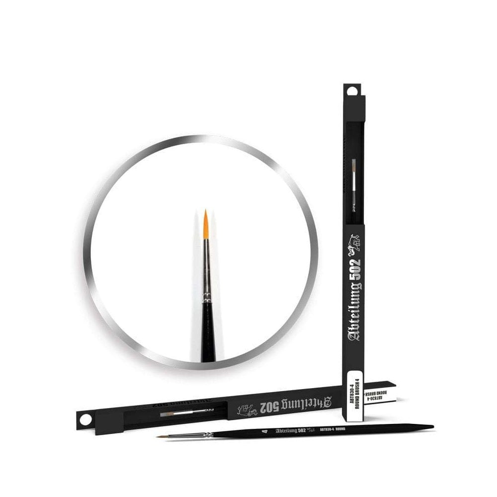 Round brushes are most commonly used in scale modeling for all kinds of details. The size of the tip is very important for the different details, just like its degree and hair characteristics that define the quality of a brush. Abteilung 502 brand´s brushes have become a classic in the world of modelling. Our wide range of high quality brushes allows you to achieve the best results and you could choose the one that best suits your needs. With these brushes you can achieve all the needed effects for a perfect finished model. Quality and conservation of brushes is of great importance because they will make easier the most efficient application of the paint. And also using our ABT114 Magic Gel you will keep your brushes like new.