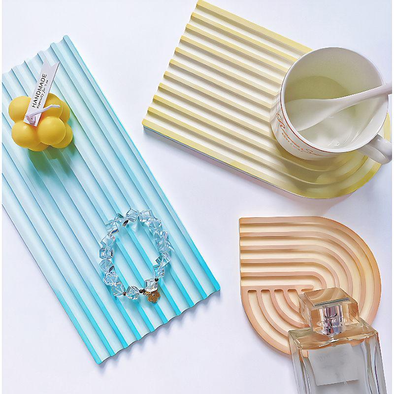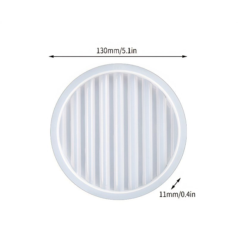 This silicone mould is designed for casting a round tray featuring a vertical ribbed surface texture. The evenly spaced ribs add visual structure while maintaining a clean, modern appearance suitable for decorative and functional use.