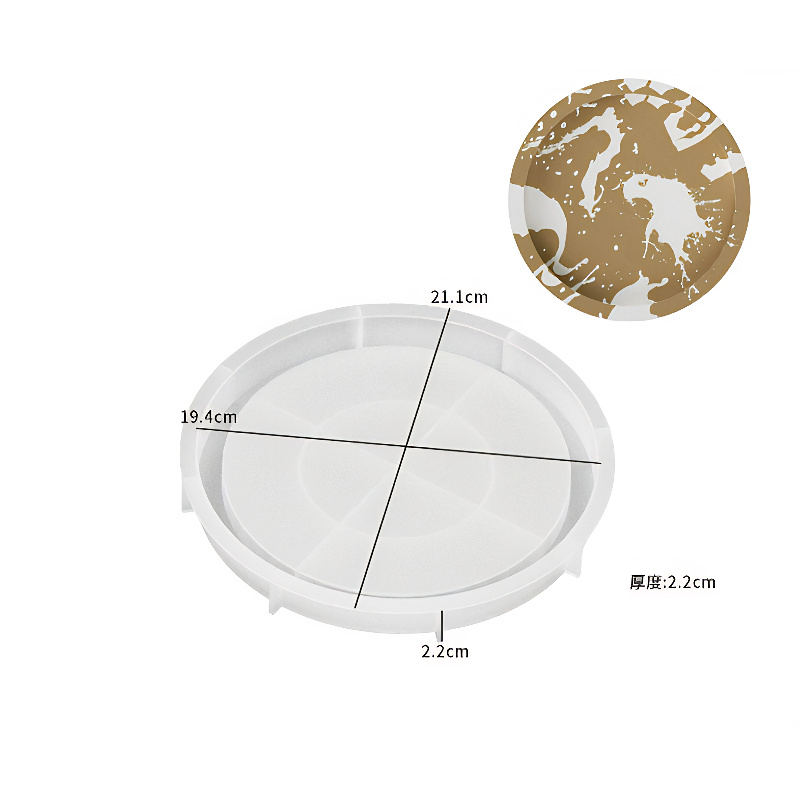 This round silicone mould has a 211mm diameter and is designed for casting larger shallow resin trays, dishes, and decorative pieces. The simple circular shape makes it suitable for functional items as well as display pieces.