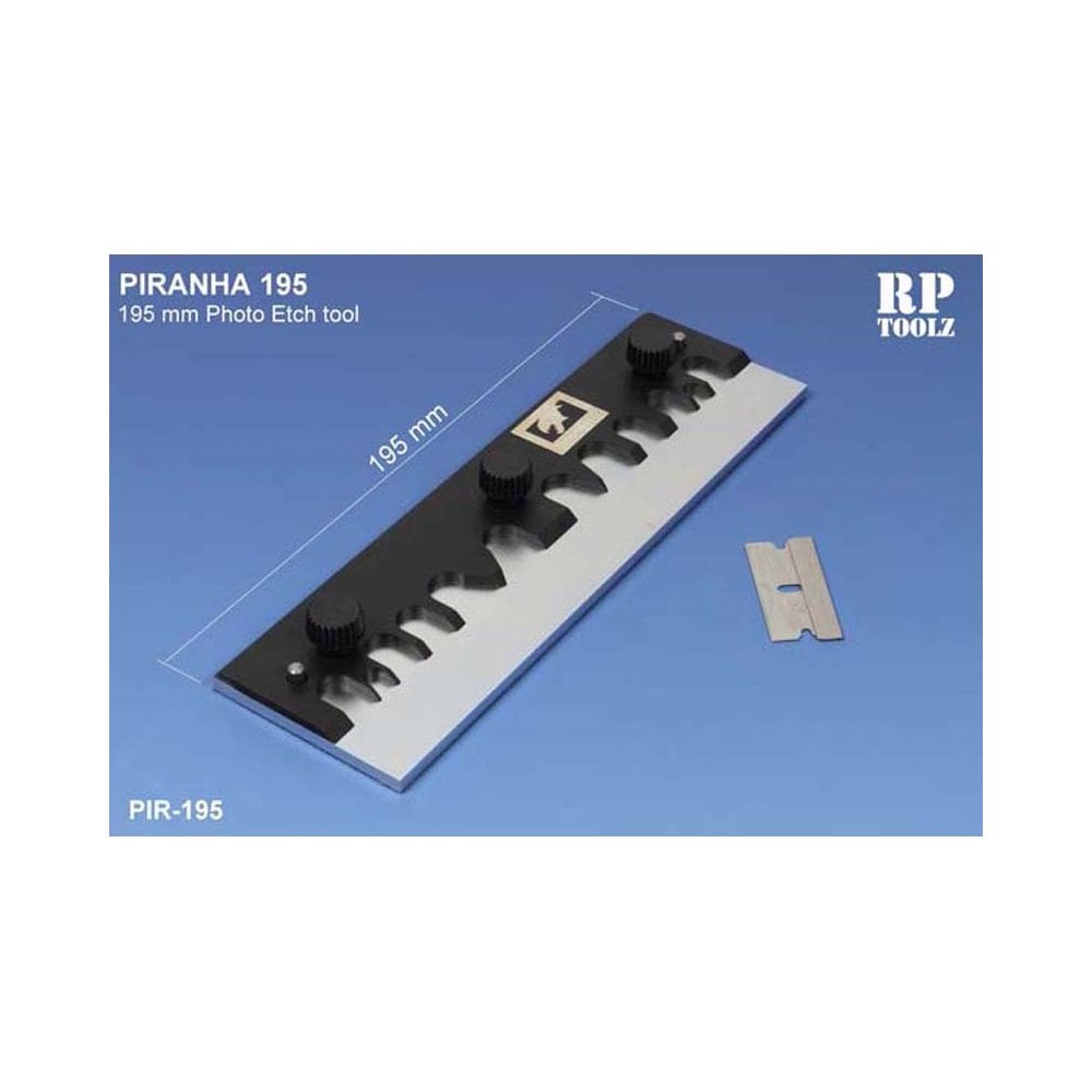The RP Toolz Piranha Series 195mm Photo-Etch Bending Tool PIR-195 is engineered for shaping larger photo-etched parts with precision and control. Its extended clamping width makes it ideal for handling bigger components while maintaining accuracy and stability.