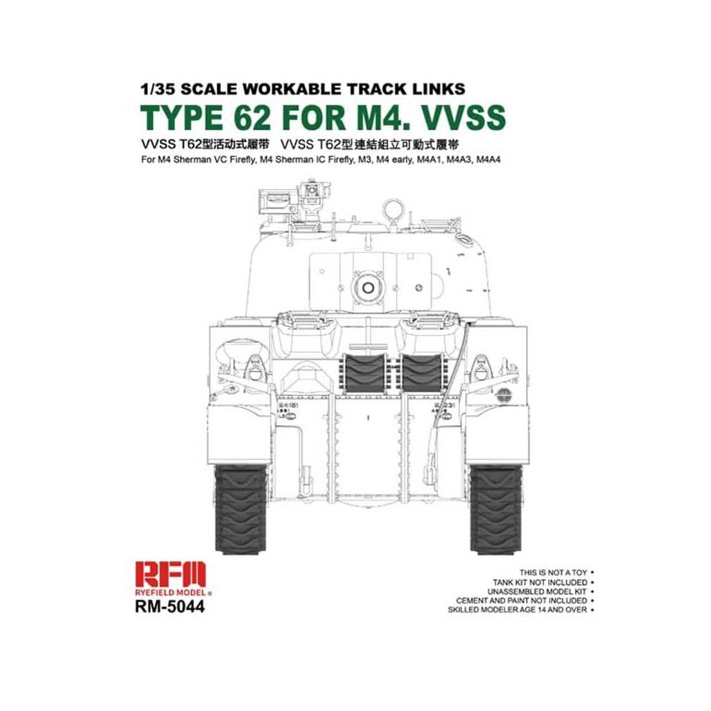 This 1/35 scale set of workable track links from Rye Field Models is designed for British Sherman variants including the VC Firefly, M3, M4A1, M4A4, and M4 Early. Each link is precisely moulded for enhanced realism, allowing accurate articulation and positioning on your kit builds. Ideal for modellers seeking to upgrade or replace kit-supplied tracks with more detailed and poseable alternatives.