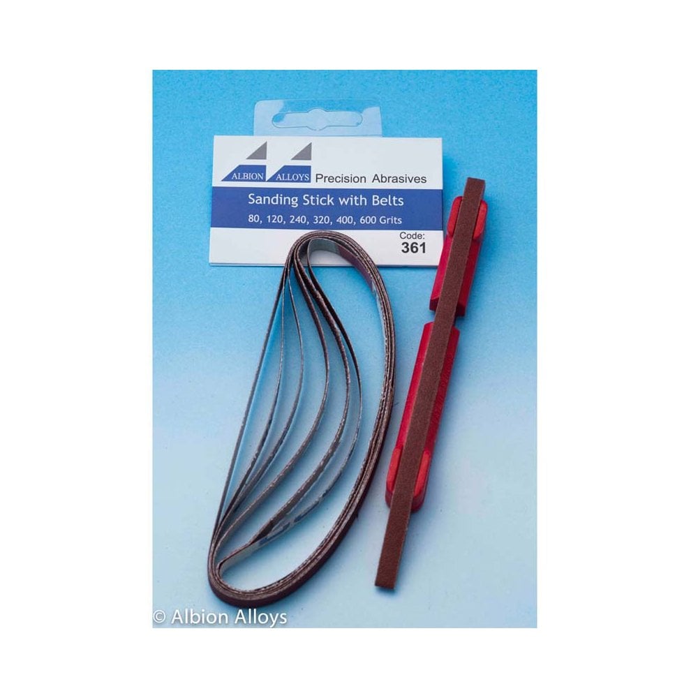 Sanding Stick Multi Angle Tool and 6 Assorted Belts Albion Alloys 361