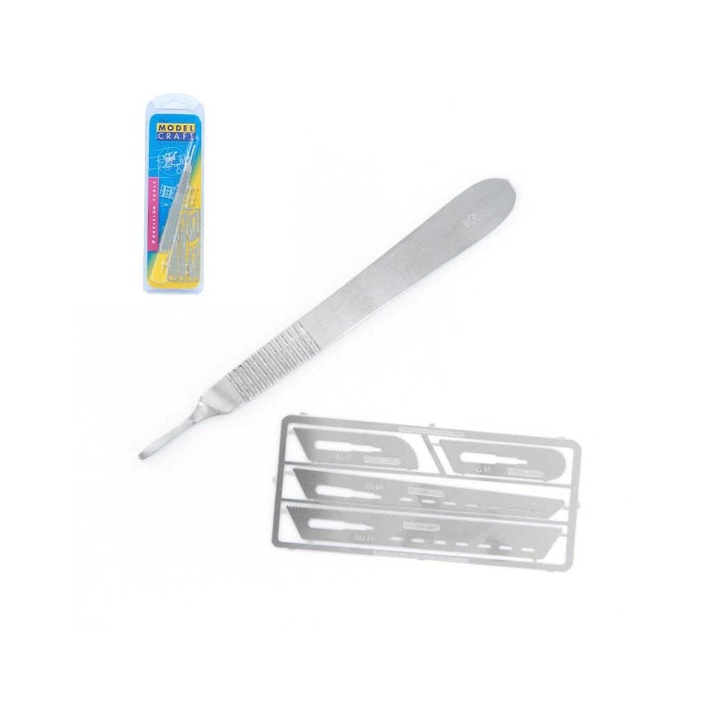 The set includes 4 very fine saw blades(0.12mm thickness) and Scalpel handle. Excellent for intricate sawing & cutting in plastics, wood and photo etched parts. Blades can fit all small fitment scalpel handles.